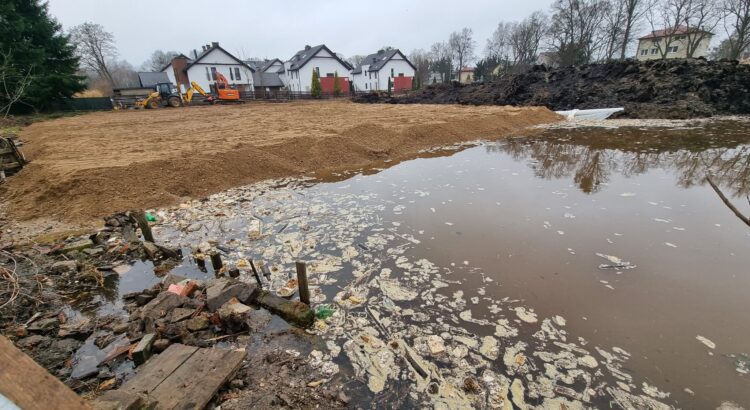 Najpierw więc miasto dokonało zmian w planie zagospodarowania i bagienny teren z przecinającym go na całej długości ciekiem wodnym stał się budowlanym. Działki sprzedano tanio i wkrótce pojawiły się na nich ciężarówki z gruzem, który wypychał wodę na istniejące zabudowania. W 2007 roku popłynęły do miasta pierwsze skargi, ale widocznie nie zainteresowały ówczesnego burmistrza. Chociaż nawiezienie 200 kg ziemi to już składowanie odpadów. A tu lądowały ciężarówki gruzu. Obojętność, lenistwo, kolesiostwo? Nie wiem. Tempo podnoszenia terenu przyśpieszyło.